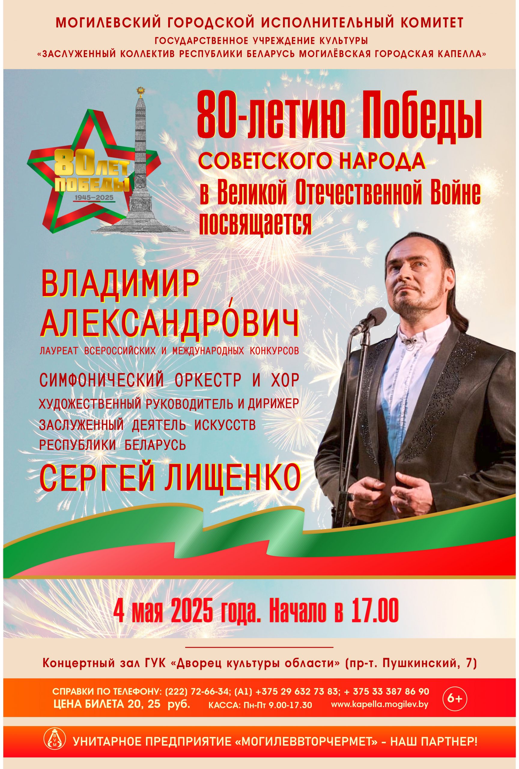 Концерт к 80-летию Победы советского народа в Великой Отечественной войне состоится в Могилеве 4 мая.