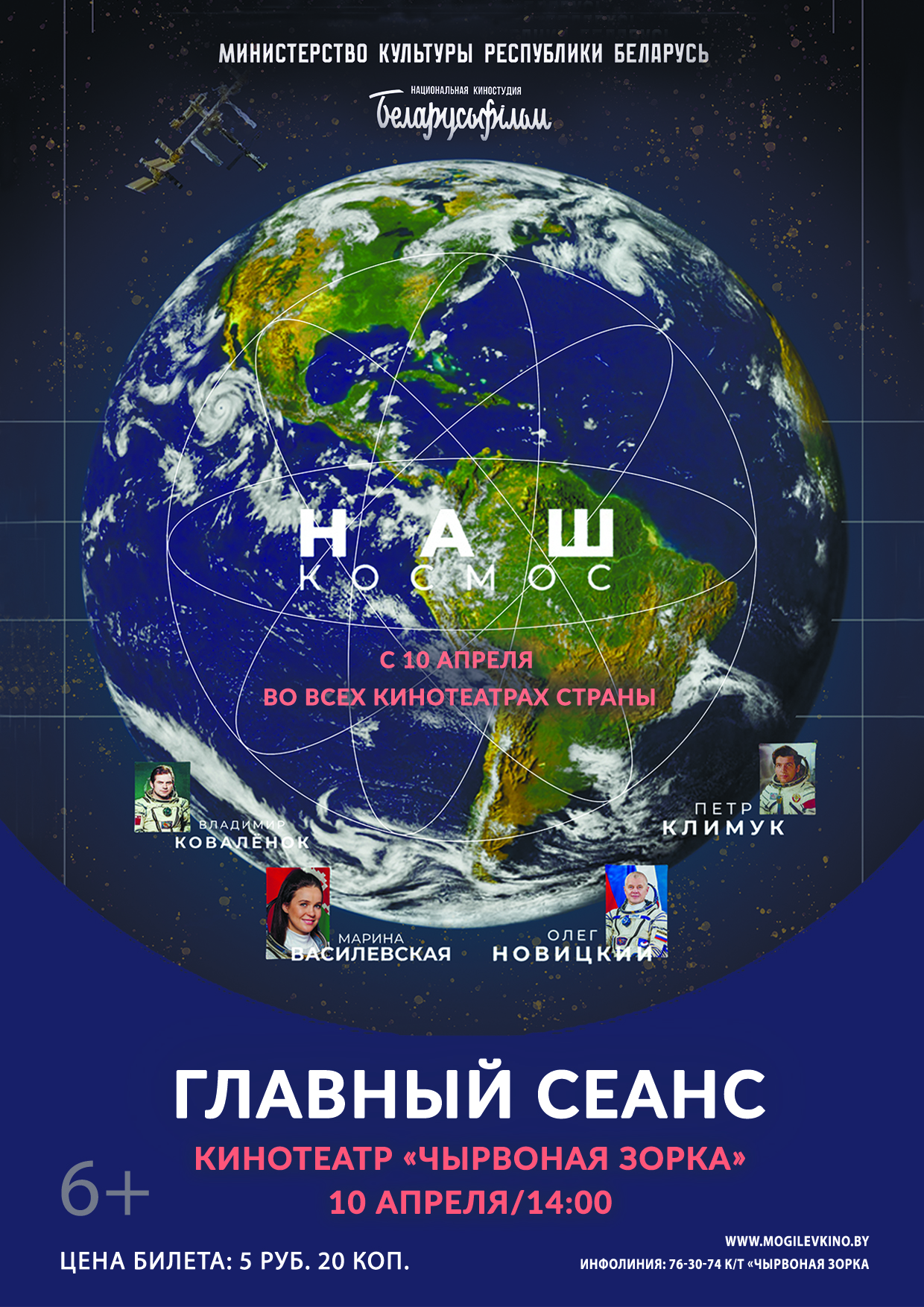 Могилевские кинотеатры «Родина», «Чырвоная Зорка», «Космос» 10 апреля приглашают на премьеру фильма «Наш космос» производства Национальной киностудии «Беларусьфильм».