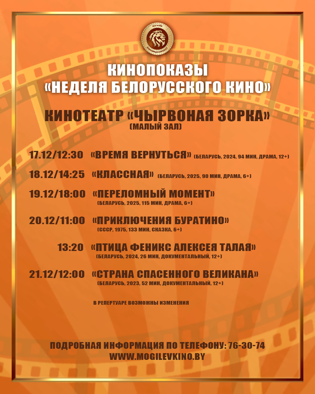 Билеты можно приобрести на сайте mogilevkino.by и в кассах кинотеатров.