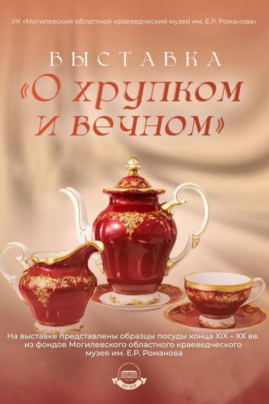 В Могилевском областном краеведчесокм музее имени Е. Р. Романова открылась изящная выставка «О хрупком и вечном», где представлена богатая коллекция посуды. Самой разной — от императорской до той, что была в массовом советском производстве. Шикарный расписной фаянс, нежнейший фарфор, чайники в виде шаров, баночек и рюмок, фужеры, столовые приборы.