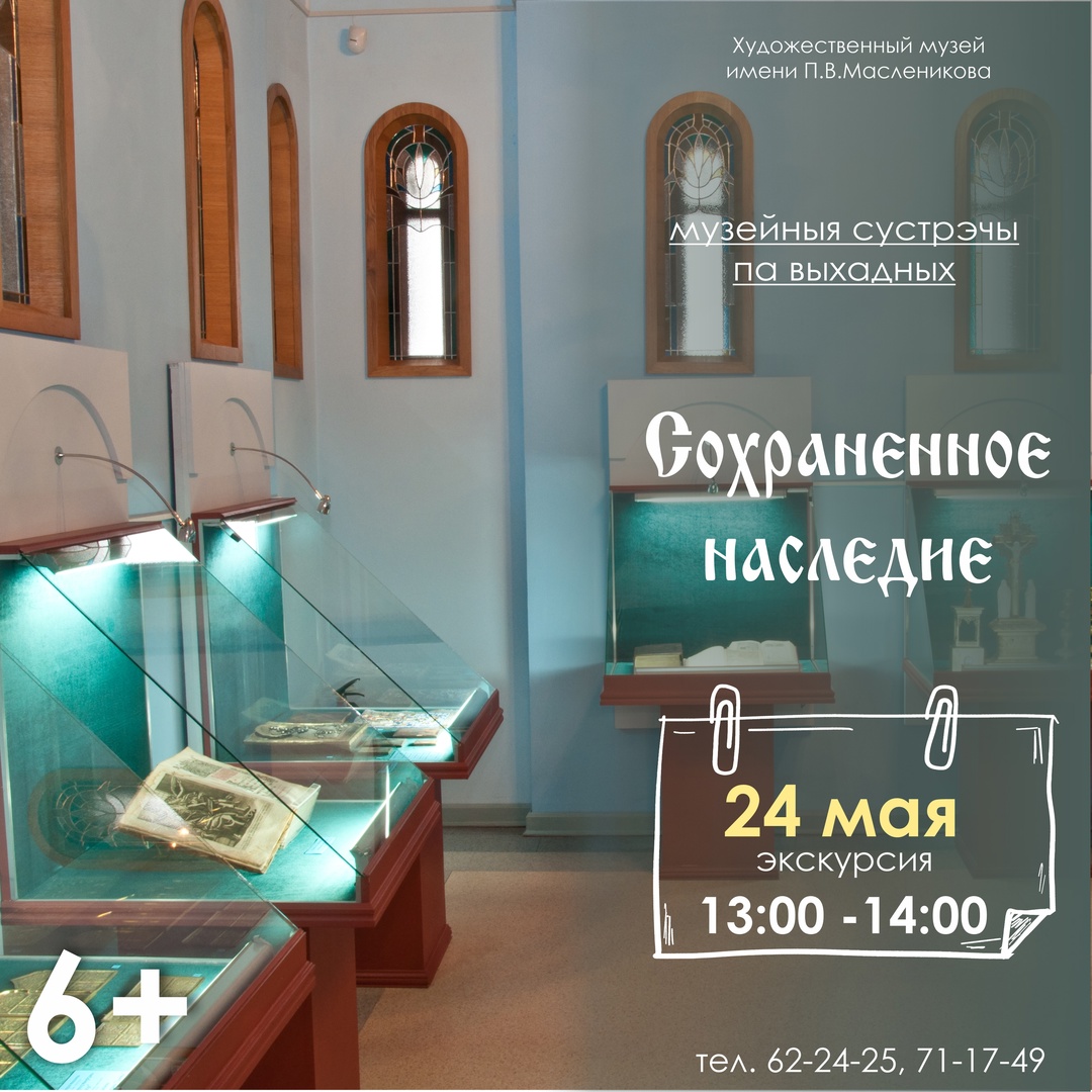 Экскурсия по постоянно действующей экспозиции «Сохраненное наследие» состоится 24 мая, в субботу, с 13.00 до 14.00. Посетителям расскажут о старинных книгах, фресках и иконах. Также будет возможность побывать в таинственной комнате-сейфе.