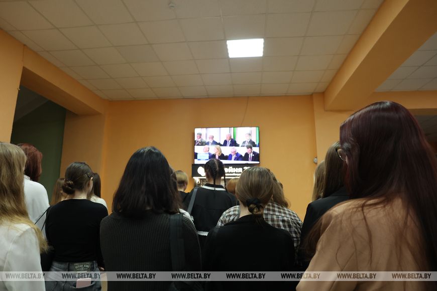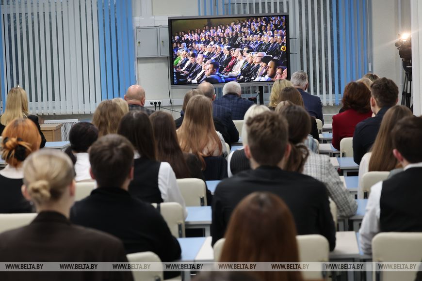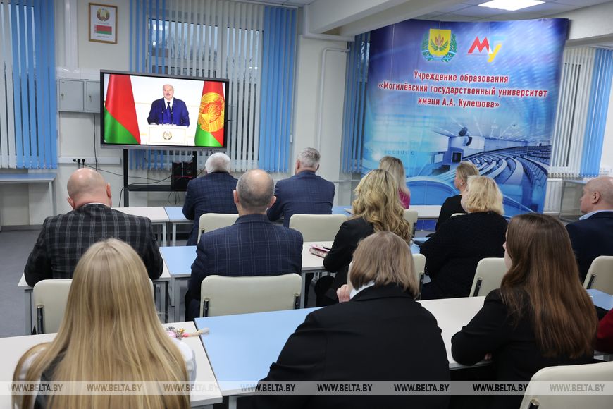 Прямую трансляцию со второго заседания VII Всебелорусского народного собрания смотрели в Могилевском государственном университете имени А.А. Кулешова. К просмотру присоединились профессорско-преподавательский состав, студенты и руководство вуза.
