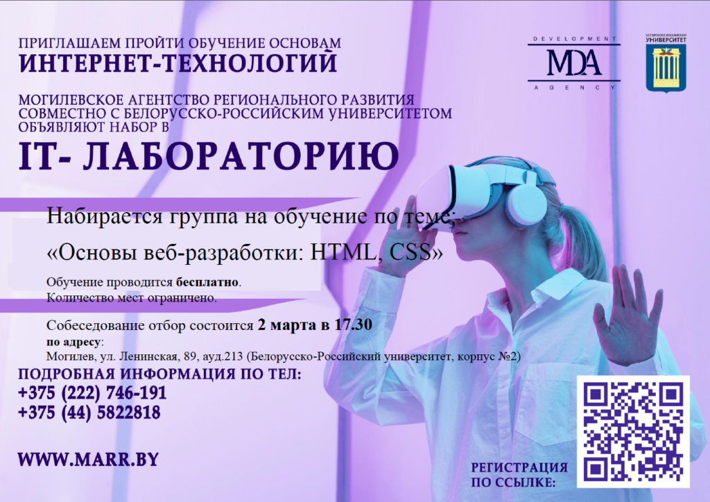 Собеседование-отбор пройдет 2 марта в 17.30 по адресу: IT-лаборатория, Могилев, ул. Ленинская, 89, аудитория 213 (Белорусско-Российский университет, учебный корпус № 2)
