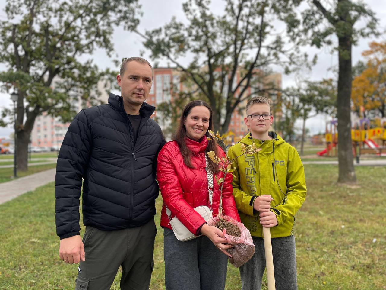 Также семья Денисовых из города Могилева не смогла пройти мимо экологической инициативы и посадила свой дуб. Сын Михаил у пары уже есть, оставалось для полного счастья посадить дерево, с чем Елена и Евгений Денисовы справились на ура!