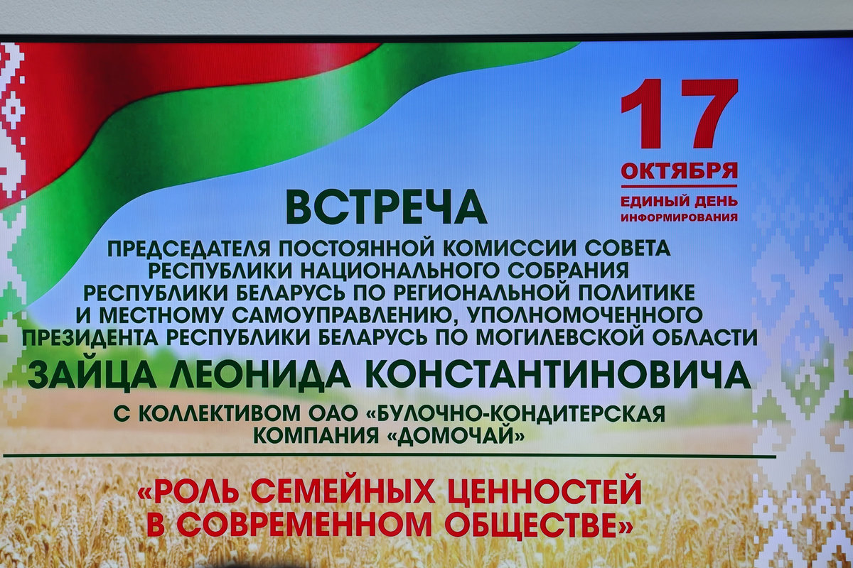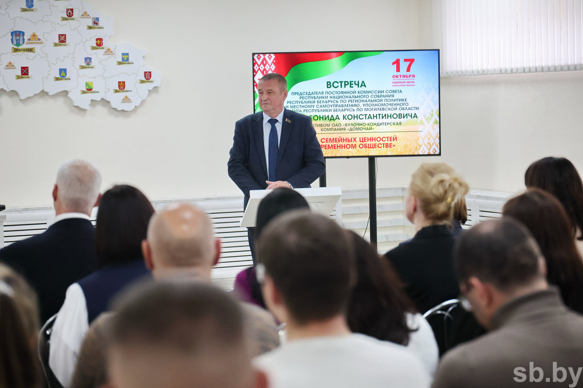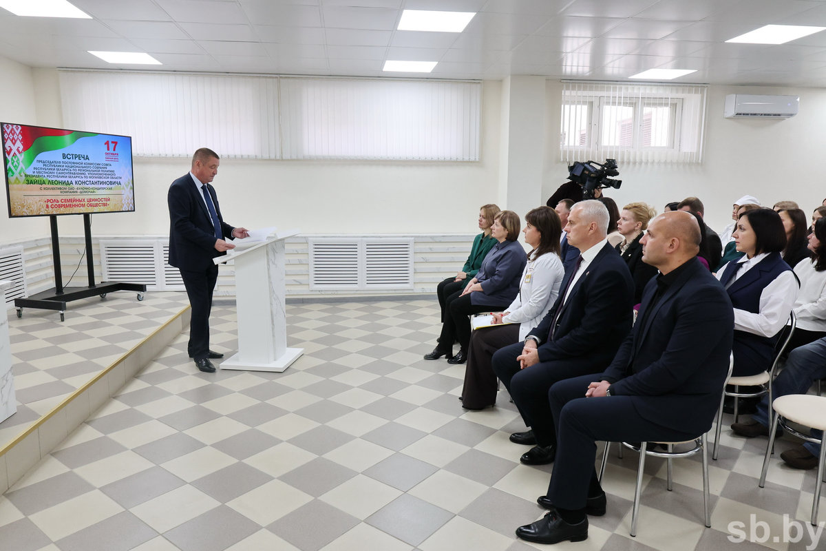 Предметный разговор стал частью единого дня информирования, посвященного Неделе родительской любви, которая с 14 по 21 октября проходит в Беларуси. Общаясь с коллективом, Леонид Заяц высказал уверенность, что традиционные семейные ценности должны поддерживаться на государственном уровне: