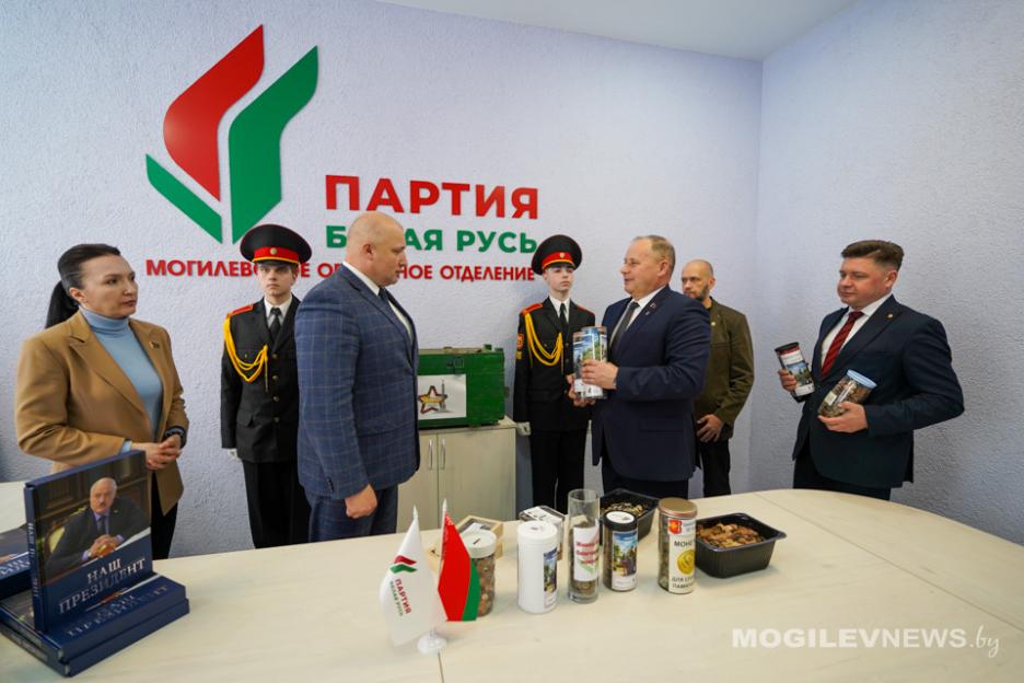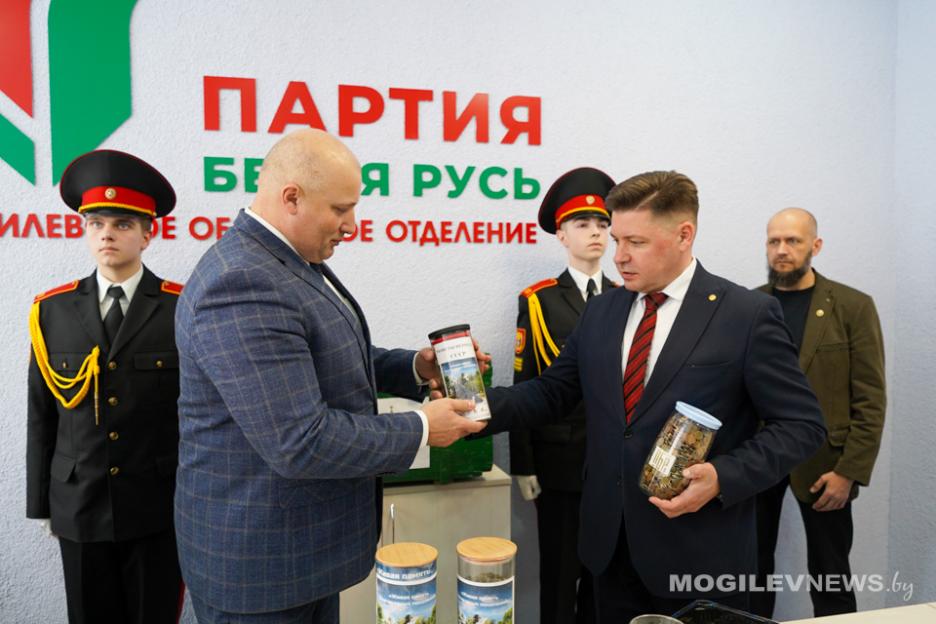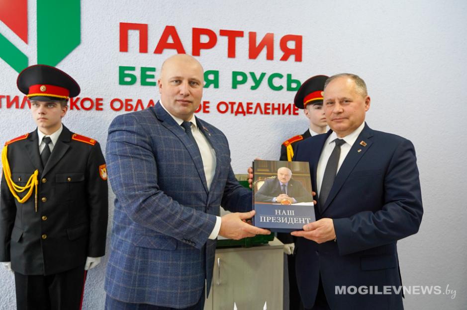В знак благодарности председатель Могилевского областного отделения Белорусской партии «Белая Русь» Максим Гурин вручил председателям районных отделений партии книгу «Наш Президент». Он сообщил: проект «Живая память благодарных поколений» объединил сотни неравнодушных жителей Приднепровского края, а районными отделениями партии было собрано порядка 200 кг монет для сплава металла памятника.