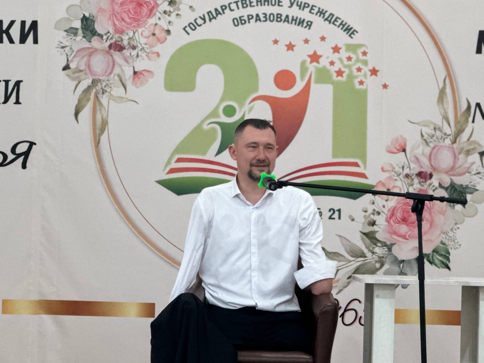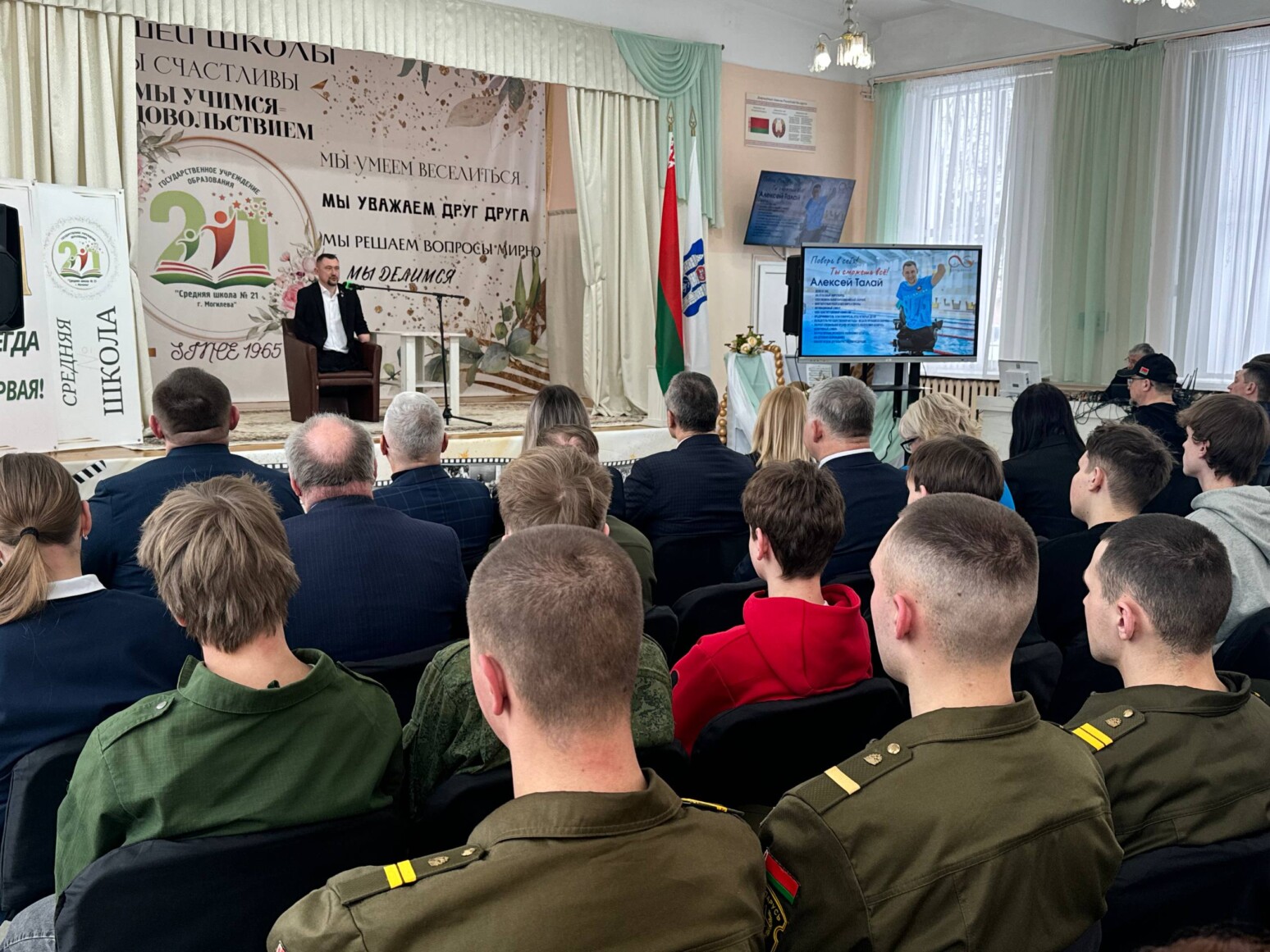 В средней школе № 21 г. Могилева поговорил с молодежью о пути своего личностного развития, о спорте, здоровье, общественной деятельности, о том, что ему помогает безмерно любить жизнь, семью, свою Родину, ответил на волнующие ребят вопросы о патриотизме, ценности жизни, любви, мотивации, благотворительности.