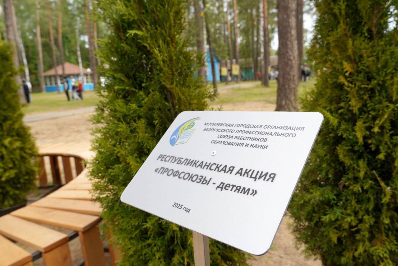 В рамках республиканской акции «Профсоюзы — детям!» Могилевская городская организация профсоюза работников образования подарила воспитательно-оздоровительному лагерю «Любуж» несколько оригинальных скамеек и помогла благоустроить зону отдыха.