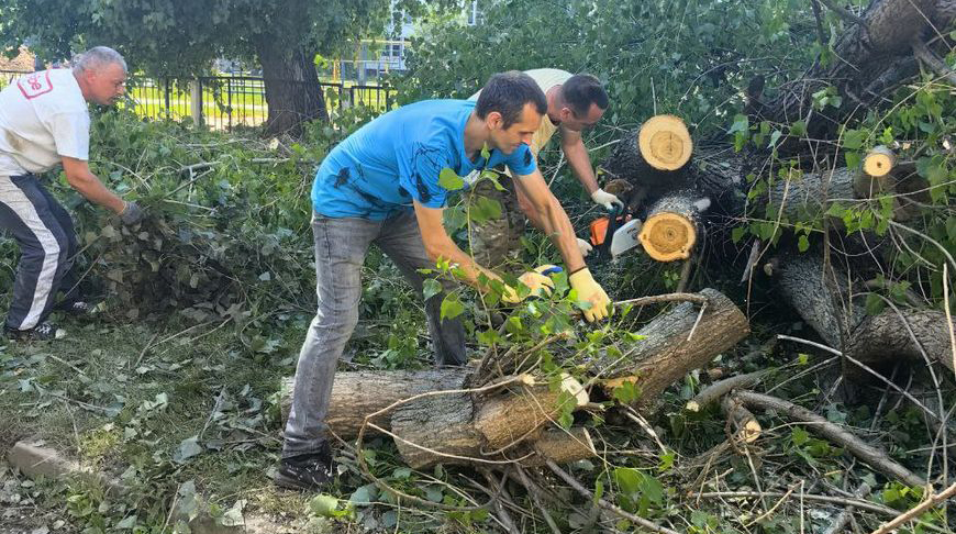 Не остались в стороне преподаватели и студенты Белорусско-Российского университета - они помогают в уборке упавших деревьев.