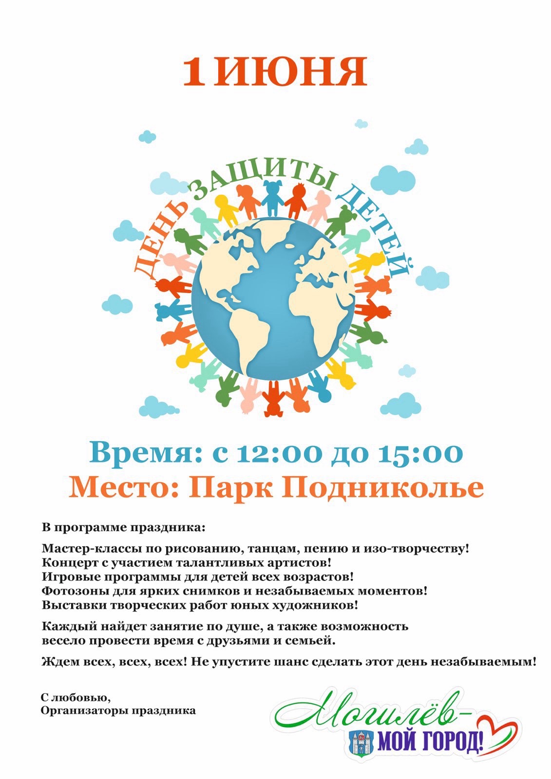 Программа мероприятия будет яркой и насыщенной, интересной и взрослым, и детям. В парке пройдет концертная программа с участием талантливых артистов города. Также могилевчан и гостей города ожидают мастер-классы по рисованию, танцам, пению и изобразительному творчеству, игровые программы, интерактивные площадки, яркие фотозоны, выставка творческих работ юных художников.