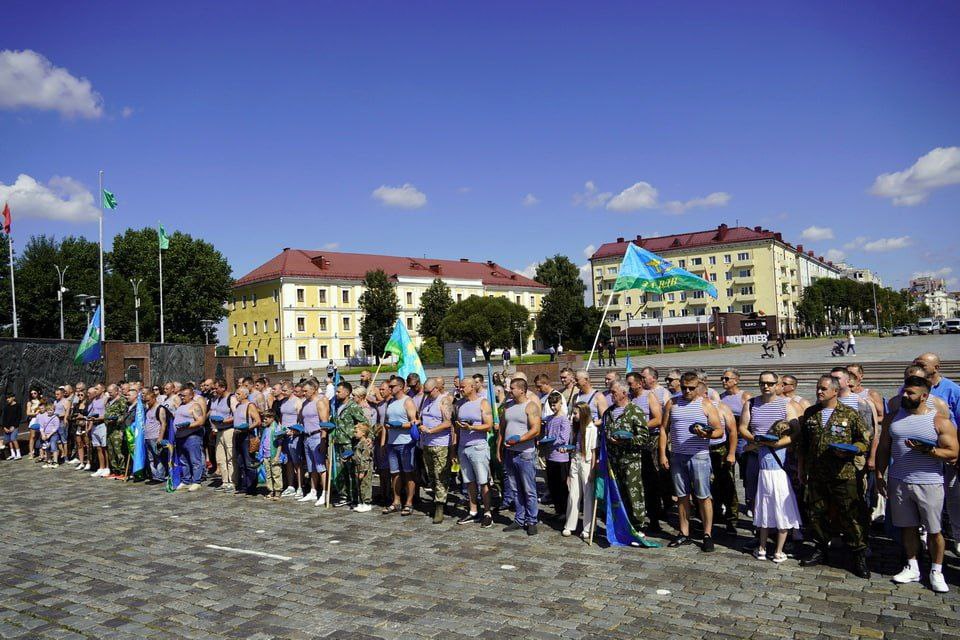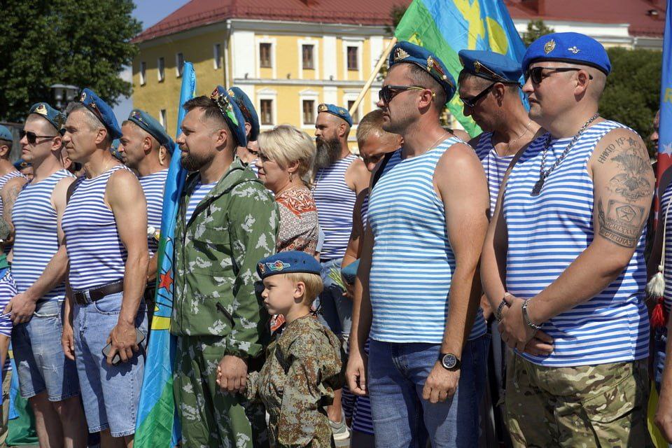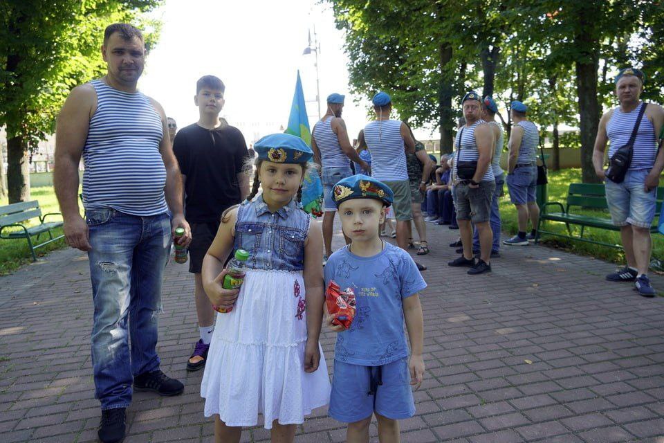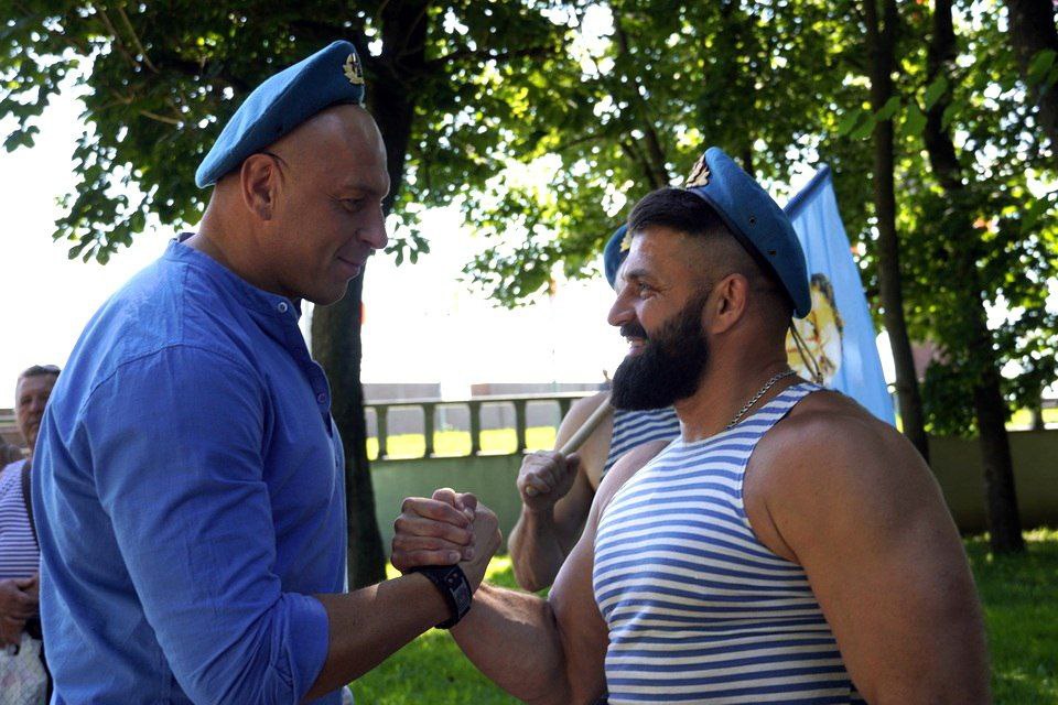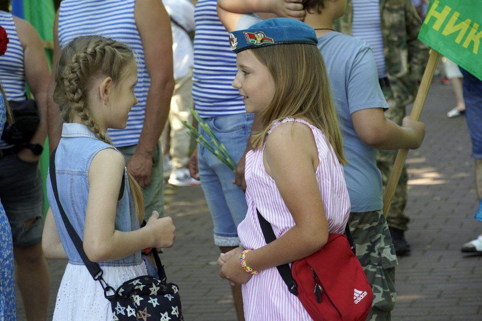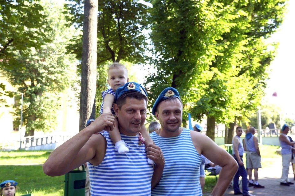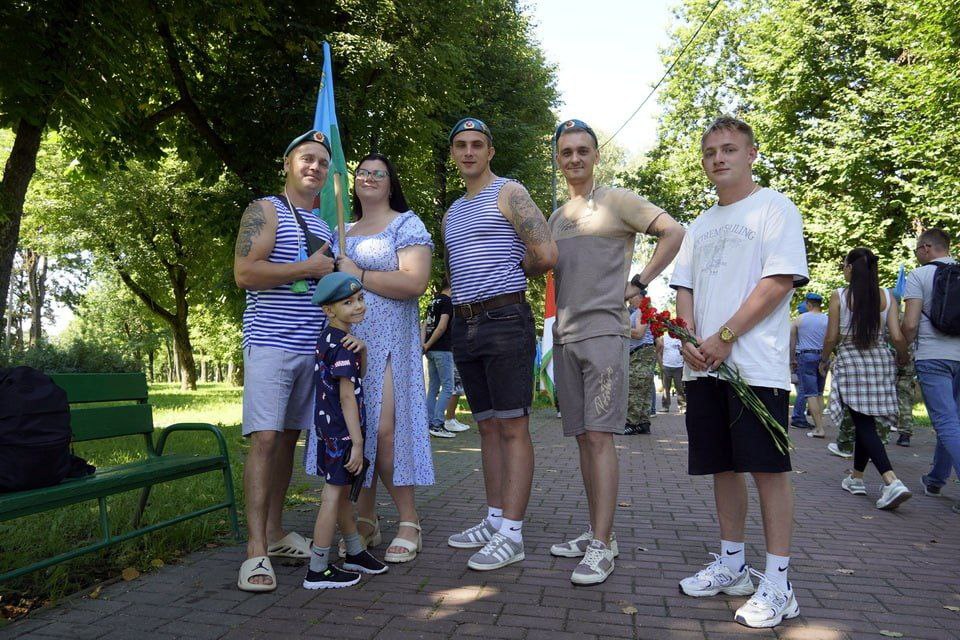 Еще задолго до начала в парке Горького начали собираться люди в тельняшках и голубых беретах. Приходили семьями. Дружеские объятия и рукопожатия — делились новостями, вспоминали былое. Под признанную хитом на все времена песню «Расплескалась синева...», которая стала негласным гимном ВДВ, поздравляли друг друга.