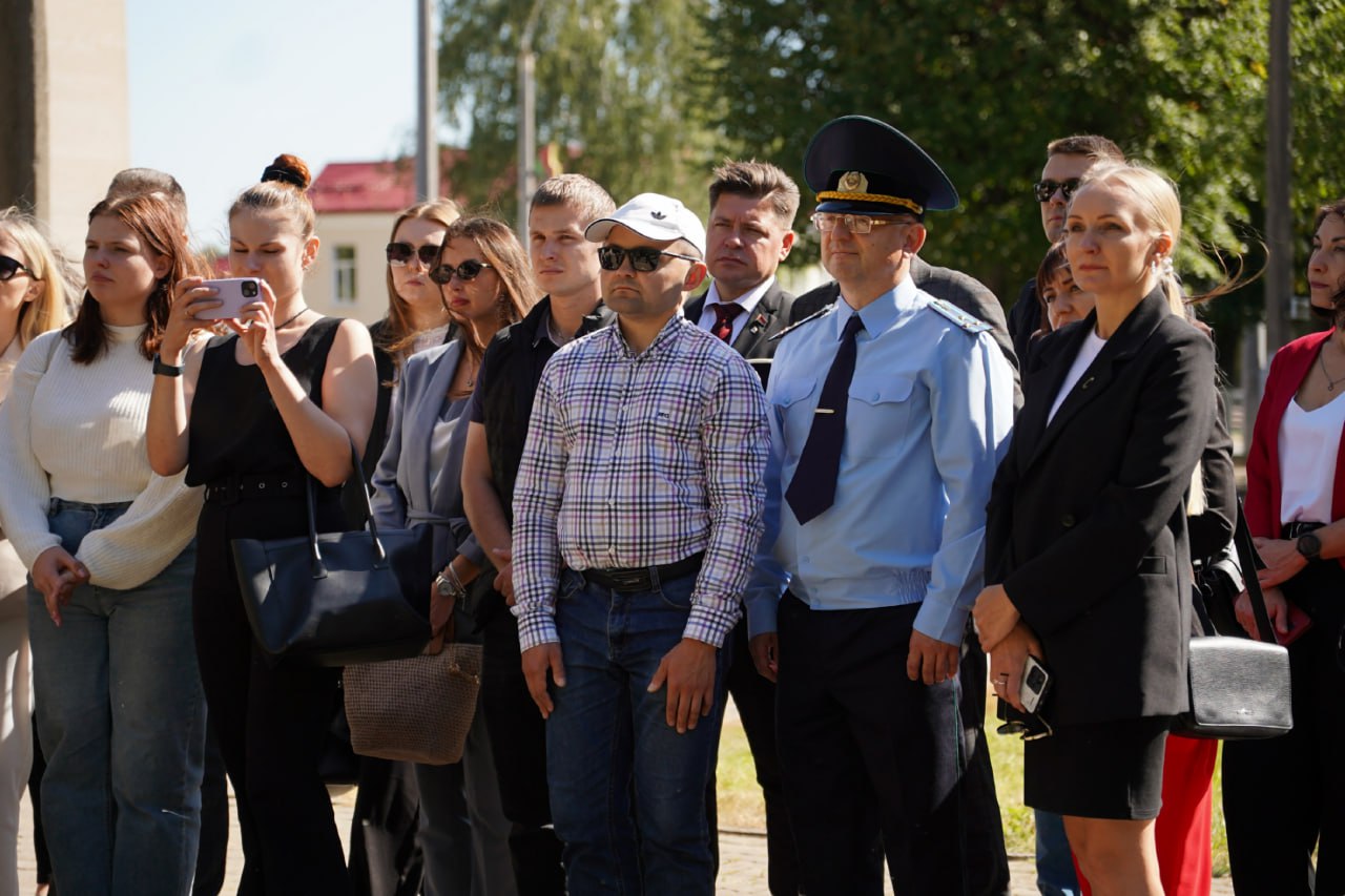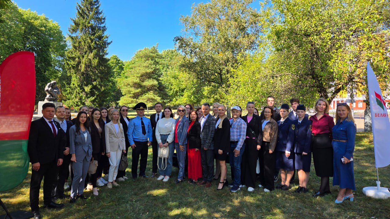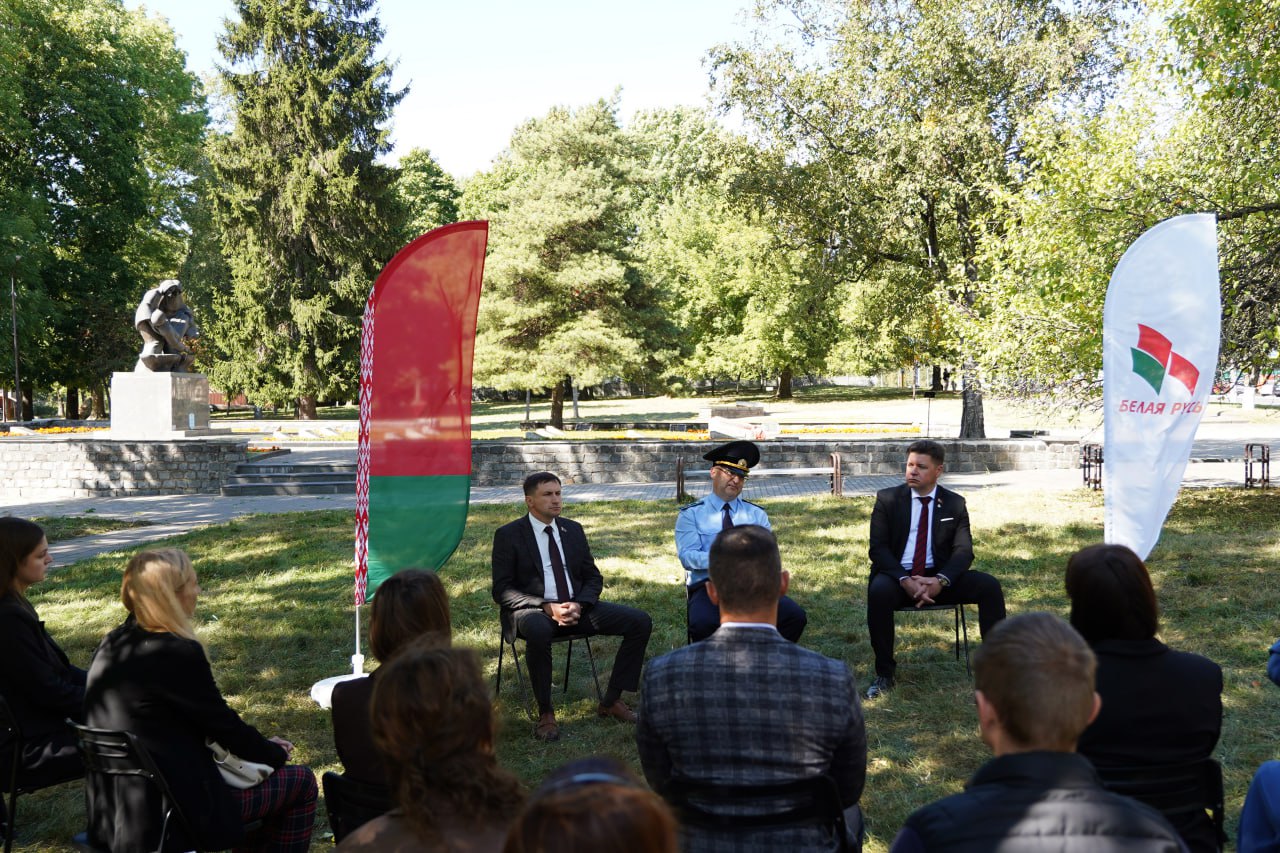 Формат для мероприятия выбрали нестандартный: в начале для участников провели экскурсию учащиеся прокурорского класса средней школы №2 на мемориальном комплексе «Детям войны», рассказав о его знаковых объектах. А после вместе со спикерами - прокурором Могилева Александром Боровским, главой администрации Андреем Коневым и заместителем главы, председателем Ленинской районной организации РОО «Белая Русь» Евгением Дуплевским - на открытом пространстве у мемориала обменялись важной информацией, касающейся истории родного государства.
