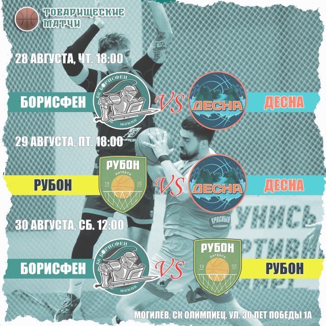 Баскетболисты «Борисфена» 28-30 августа проведут в СК «Олимпиец» товарищеские матчи по баскетболу.