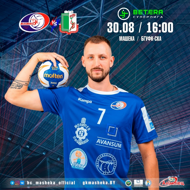 Гандбольный клуб «Машека» 30 августа (суббота) проведет первый матч нового сезона Betera Суперлиги Беларуси. Соперником наших ребят будет команда БГУФК-СКА из столицы. Игра начнется в 16.00 на площадке СК «Олимпиец». Трансляция на sport-tv.by.