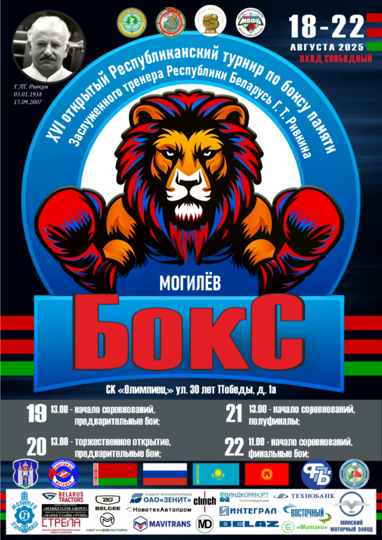 Могилев принимает ХVI открытый Республиканский турнир по боксу среди юниоров и юниорок 2009-2010 годов рождения памяти заслуженного тренера Беларуси Генриха Ривкина. Мероприятие будет проходить до 22 августа в спортивном комплексе «Олимпиец».