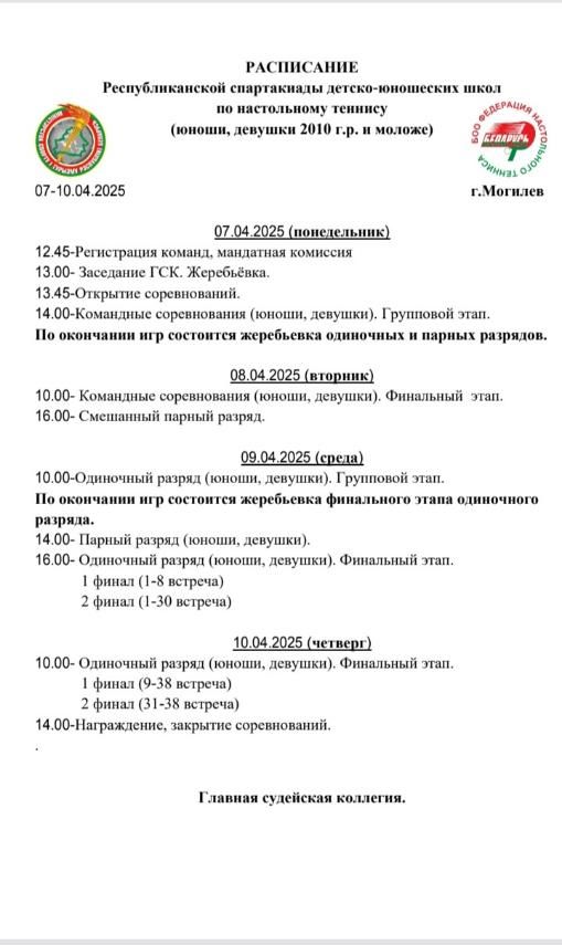 На спартакиаде будут разыграны места в командных, одиночных, парном и смешанном парном разрядах. Ознакомится с итогами и следить за ходом соревнований можно будет на сайте www.bttf.by.