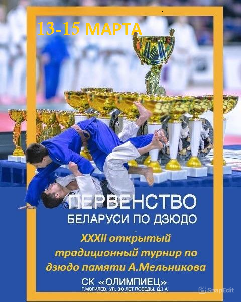 С 12 по 15 марта в Могилеве в зале игровых видов спорта спортивного комплекса «Олимпиец» состоится XXXII открытый традиционный турнир по дзюдо памяти воина-интернационалиста Героя Советского Союза Андрея Мельникова.