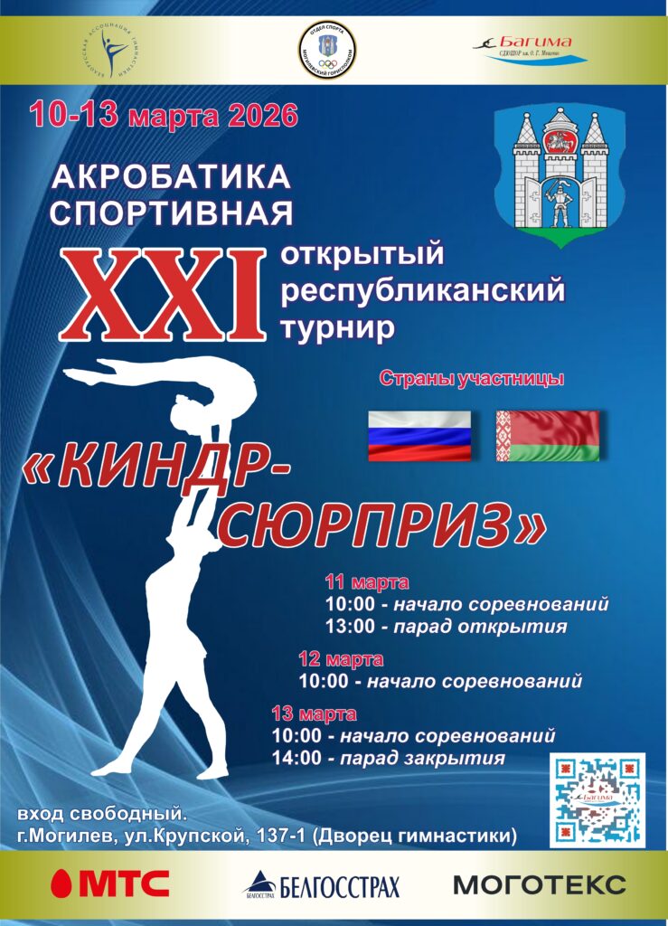XXI Открытый республиканский турнир по спортивной акробатике «Киндр-сюрприз» пройдет в Могилеве 11-13 марта. На площадке Дворца гимнастики встретятся более 200 лучших спортсменов из Беларуси и России, рассказали в городской СДЮШОР «Багима» имени О. Г. Мищенко.