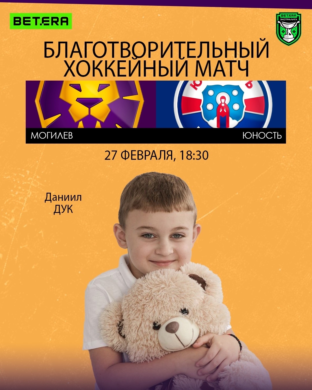 В областном центре 27 февраля пройдет благотворительный хоккейный матч в поддержку Даниила Дука. Об этом сообщает пресс-служба ХК «Могилев».