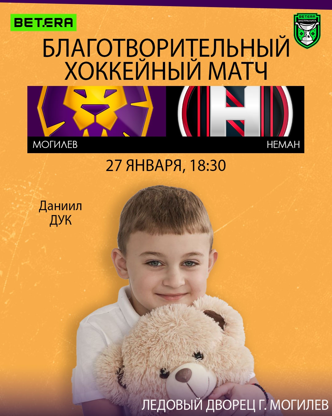 В областном центре 27 января пройдет благотворительный хоккейный матч в поддержку Даниила Дука. Об этом сообщает пресс-служба ХК «Могилев».