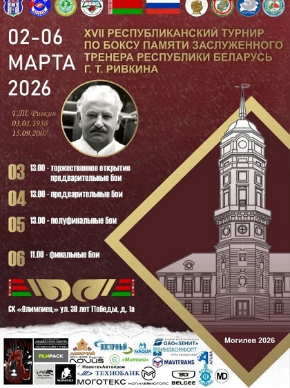 Юниоров 2010-2011 годов рождения из Беларуси и России соберет в Могилеве 17-й открытый республиканский турнир по боксу памяти заслуженного тренера Беларуси Генриха Ривкина. Мероприятие будет проходить 2-6 марта в легкоатлетическом манеже спортивного комплекса «Олимпиец».