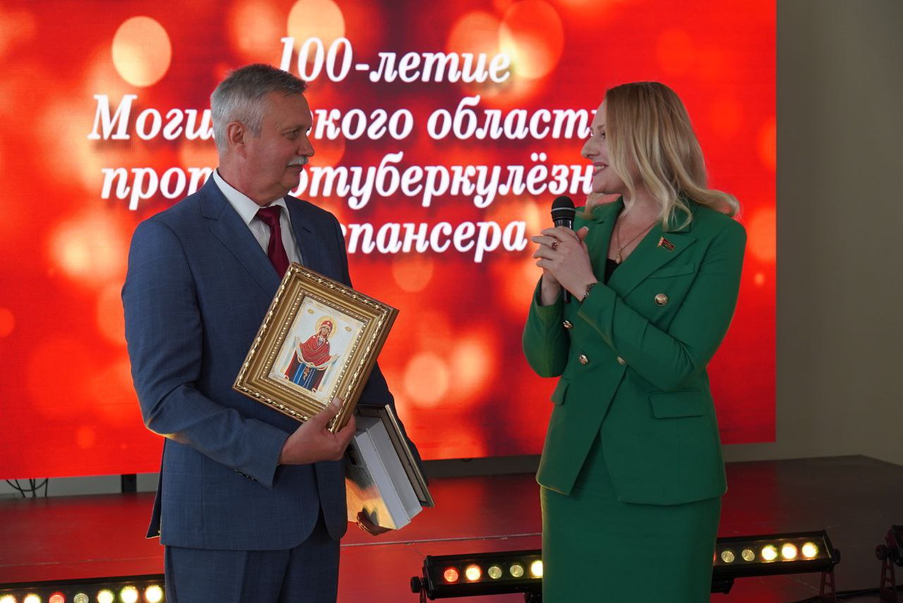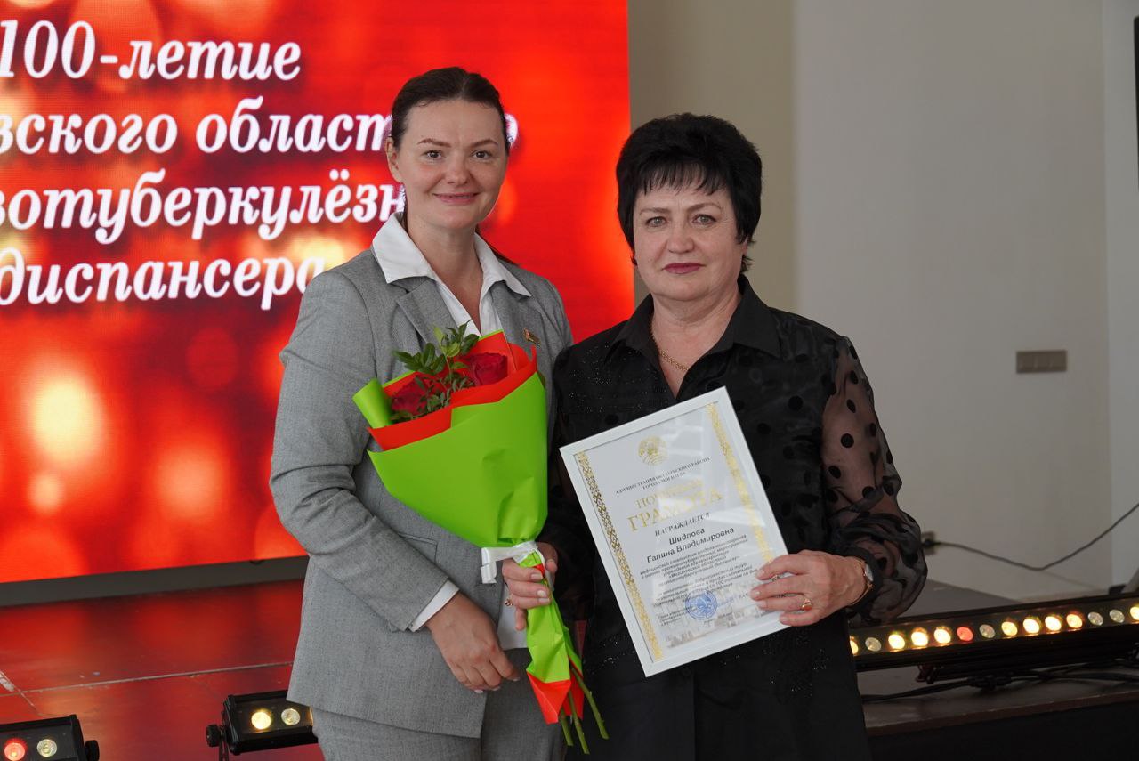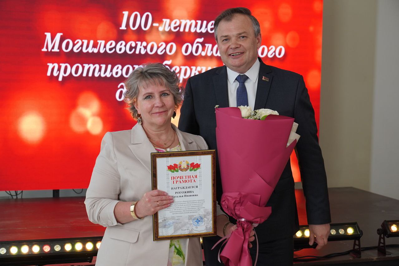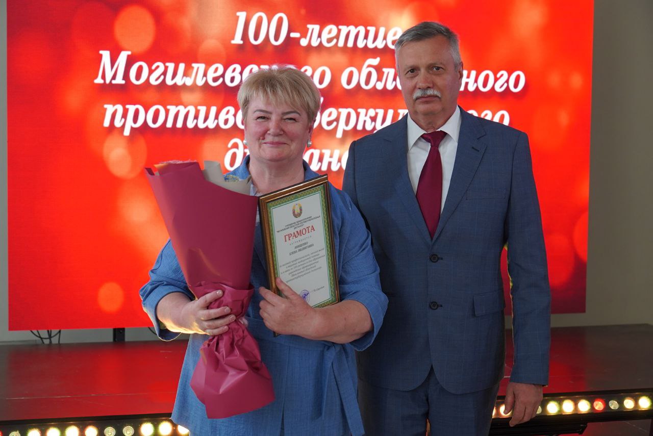 Торжественное мероприятие, посвященное 100-летнему юбилею Могилевского областного противотуберкулезного диспансера, собрало представителей Министерства здравоохранения Республики Беларусь в лице заместителя министра Александра Старовойтова, главного управления по здравоохранению Могилевского облисполкома, администрации города Могилева, ветеранов отрасли и медицинских работников региона. Среди почетных гостей был председатель областной организации Белорусского профсоюза работников здравоохранения Александр Басенко.