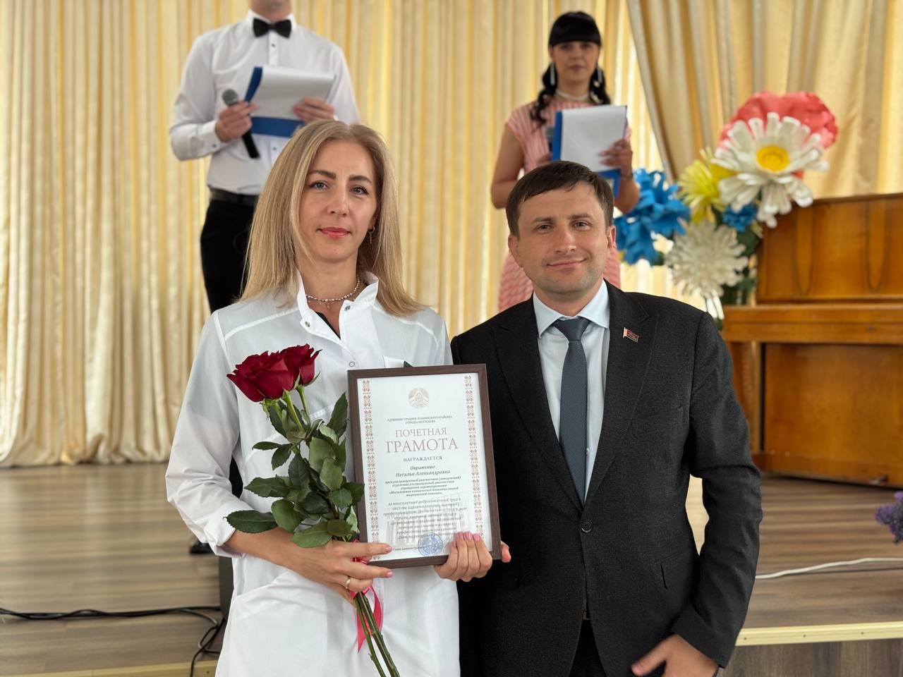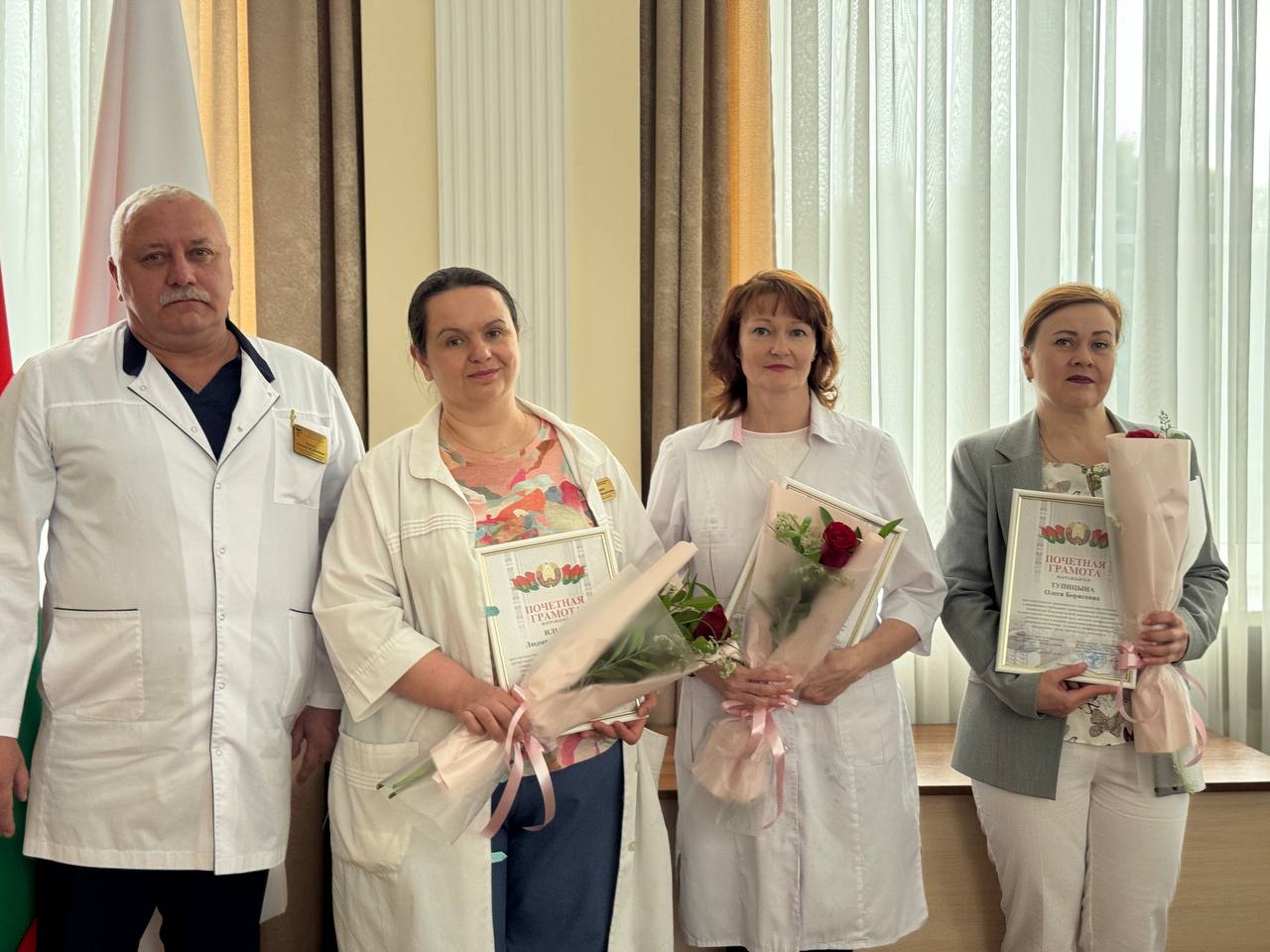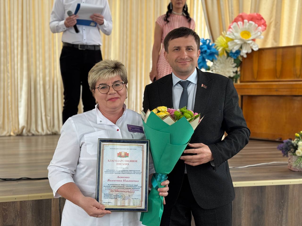 В этот день были отмечены лучшие из лучших. Управляющий делами горисполкома Алексей Брацков и глава администрации Ленинского района города Могилева Андрей Конев вручили благодарности и цветы за их самоотверженный труд.
