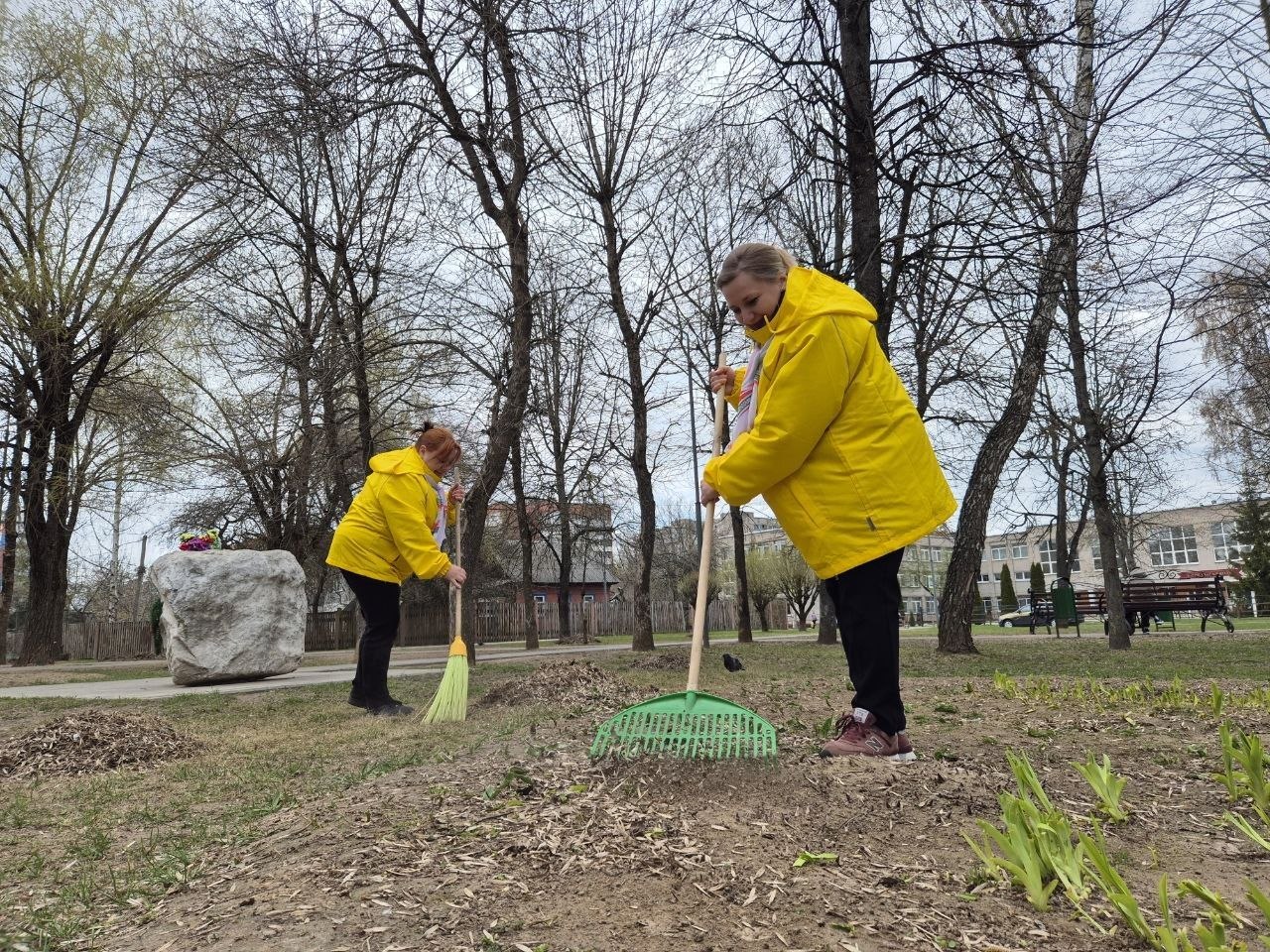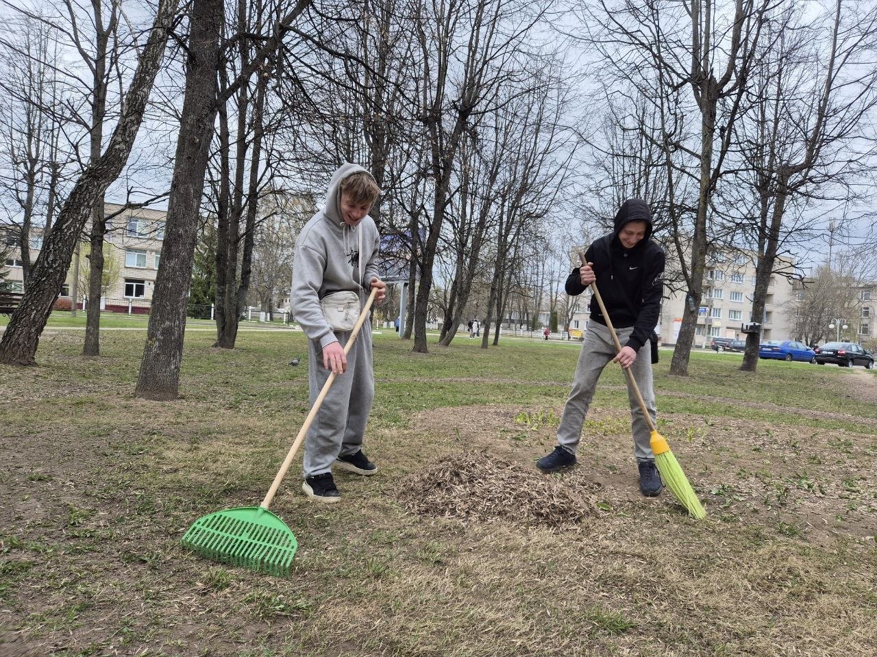 В одноименной акции в сквере 50-летия обороны Могилева трудились представители первичек из «Моготекса» и «Могилевзеленстроя», а также учащиеся Могилевского государственного колледжа сферы обслуживания. Они наводили порядок – убирали прошлогоднюю листву и мусор. Отдельное внимание уделили восстановлению памятной надписи на мемориальном камне.