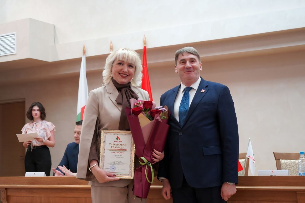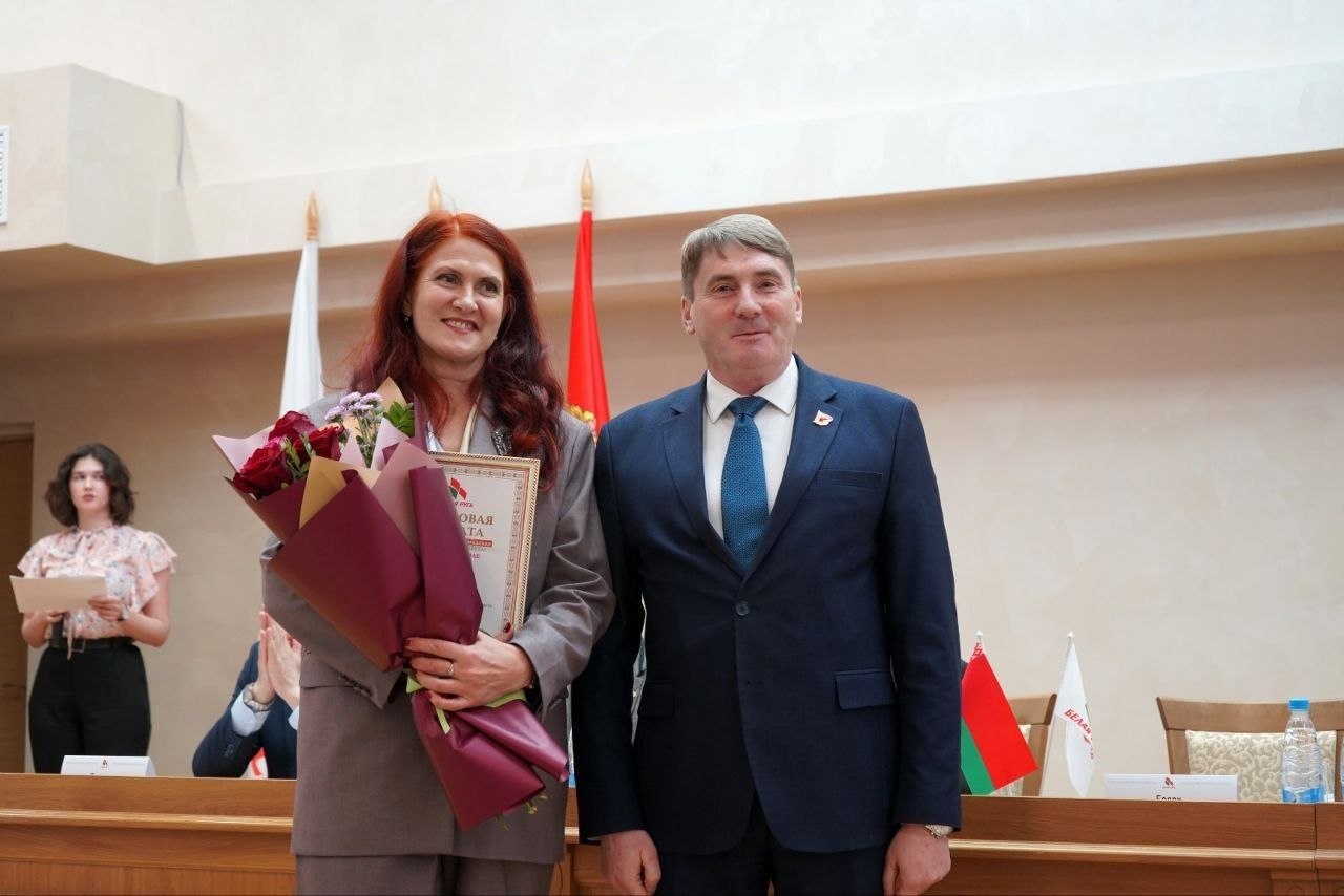 Среди награжденных - представители актива городской организации. Почетными грамотами Республиканского Совета РОО «Белая Русь» награждены заместитель председателя городской организации Елена Большекова и ведущий специалист Октябрьской организации Елена Посохова; Благодарственным письмом - председатель Октябрьской организации Алла Галушко. Грамотой областного Совета - наш соратник, директор Троллейбусного парка №1 Сергей Монастыренко.