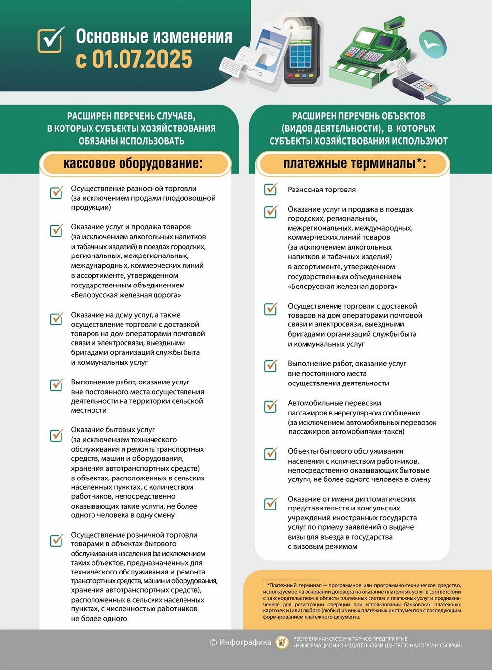 ИНФОГРАФИКА: Переход на использование кассового оборудования и платежных терминалов в отдельных сферах деятельности