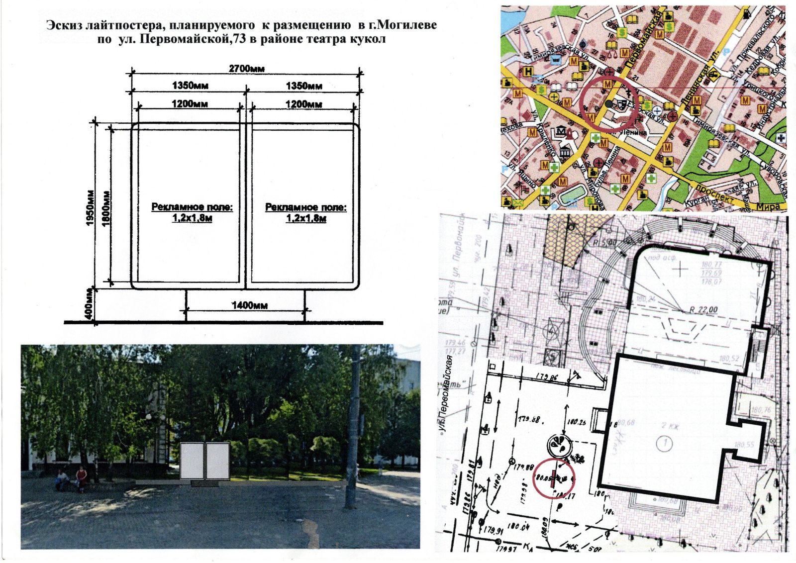 Рекламораспространитель (победитель торгов либо лицо, приравненное к победителю торгов) должен выполнить общие требования к средствам наружной рекламы, закрепляемым на земельном участке: — для размещения средства наружной рекламы требуется проект привязки к участку местности, разработанный в установленном порядке; — подключение средств наружной рекламы к источнику электроснабжения осуществляется закрытым (подземным) способом с применением изолированного провода; — фундамент средств наружной рекламы должен быть заглублен ниже уровня поверхности земли; — рекламное поле лайтпостера, закрепляемого на земельном участке, должно быть в размере 1200×1800 мм, с осевым креплением опоры к рекламному полю лайтпостера. Расстояние от уровня земли до верхнего края конструкции лайтпостера должно быть не более 2300 мм. Расстояние от уровня земли до нижнего края конструкции лайтпостера должно составлять не менее 300 мм. На опоре лайтпостера должна быть маркировка с указанием владельца и его контактного телефона; — рекламное поле щита должна быть в размере 3000×6000 мм, с осевым креплением одной опоры к рекламному полю щита.