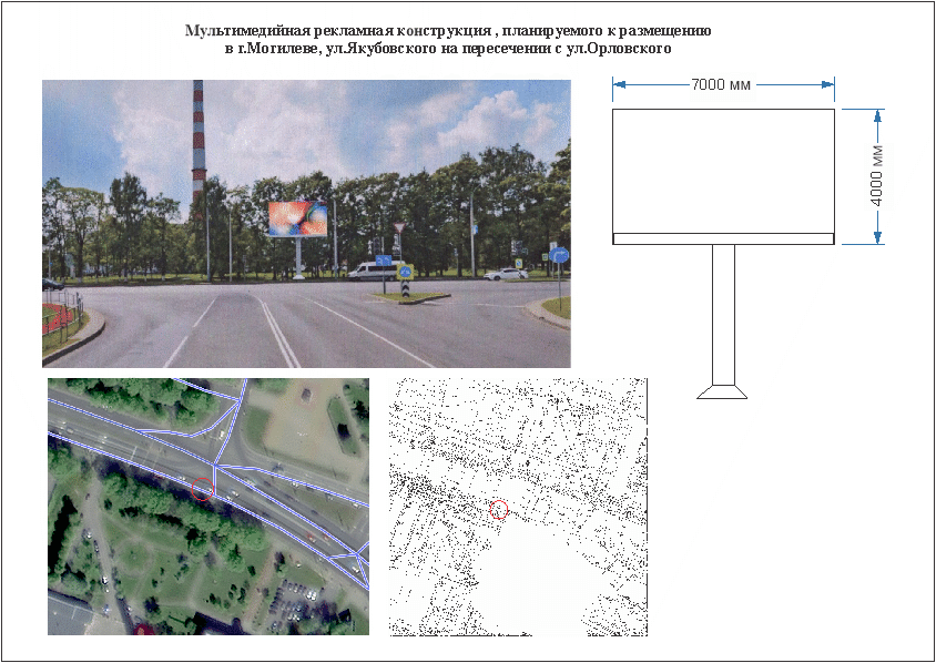 - улица Якубовского на пересечении с улицей Орловского, общая площадь - 28 кв.м., размер рекламного поля - 7х4м., площадь рекламного поля - 28 кв.м., количество рекламных полей - 1 ед.;
