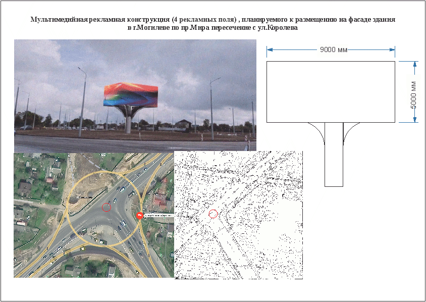 - пр-т Мира на пересечении с улицей Королева, общая площадь - 180 кв.м., размер рекламного поля - 9х5м., площадь рекламного поля - 45 кв.м., количество рекламных полей - 4 ед.;
